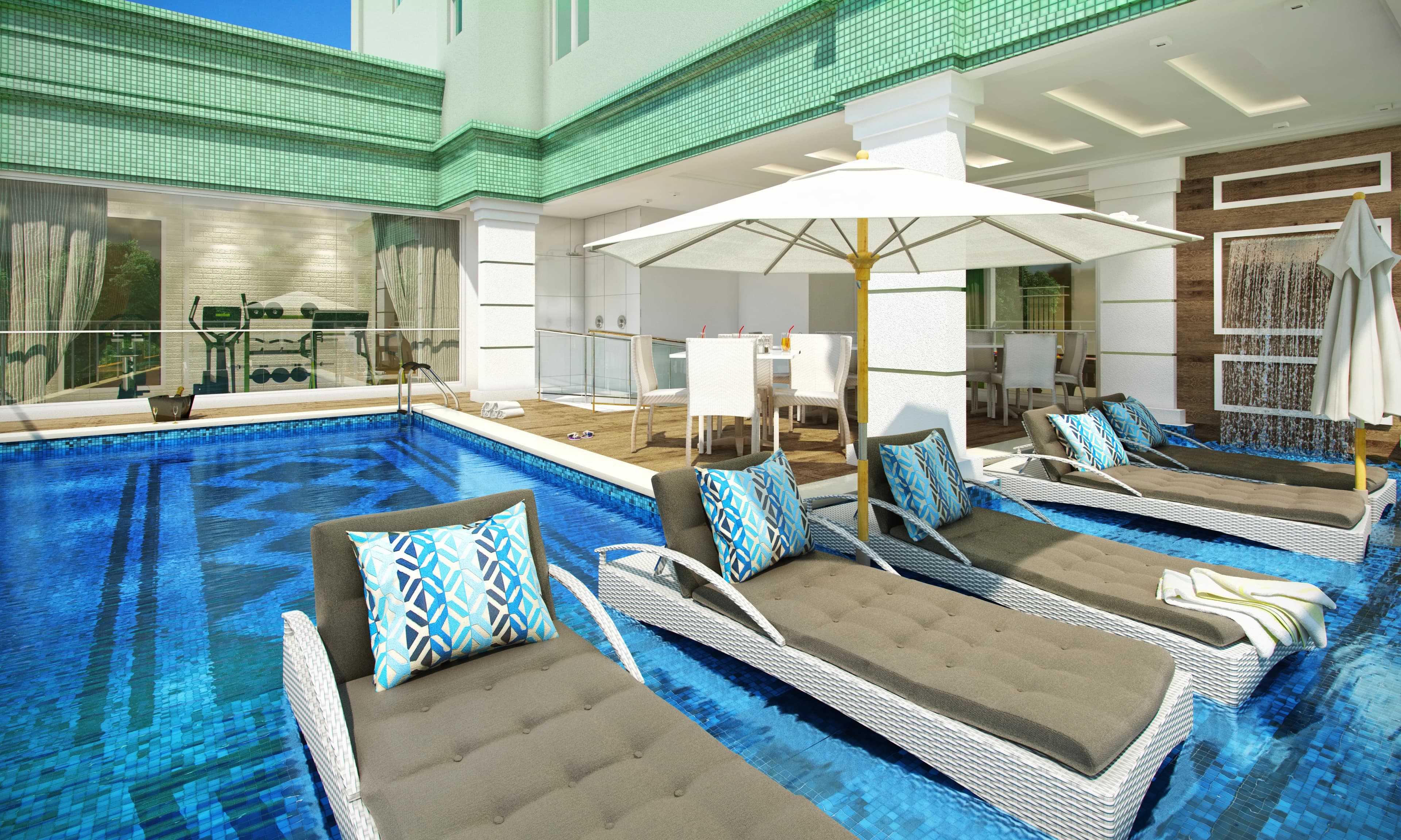 O RHS Green Village oferece infraestrutura completa e alto padrão de acabamento. Entre os diferenciais do empreendimento estão o box para artigos de praia, gás central, antena coletiva, garagem privativa, elevador social, portão de garagem automatizado, portaria eletrônica e medidor individual de gás. Conta ainda com tubulação para medidor de água, revestimento externo com pastilhas, infraestrutura para monitoramento de segurança e aproveitamento de água da chuva para limpeza e irrigação de jardins. Os ambientes sociais foram entregues totalmente decorados, garantindo sofisticação e conforto desde o primeiro dia.